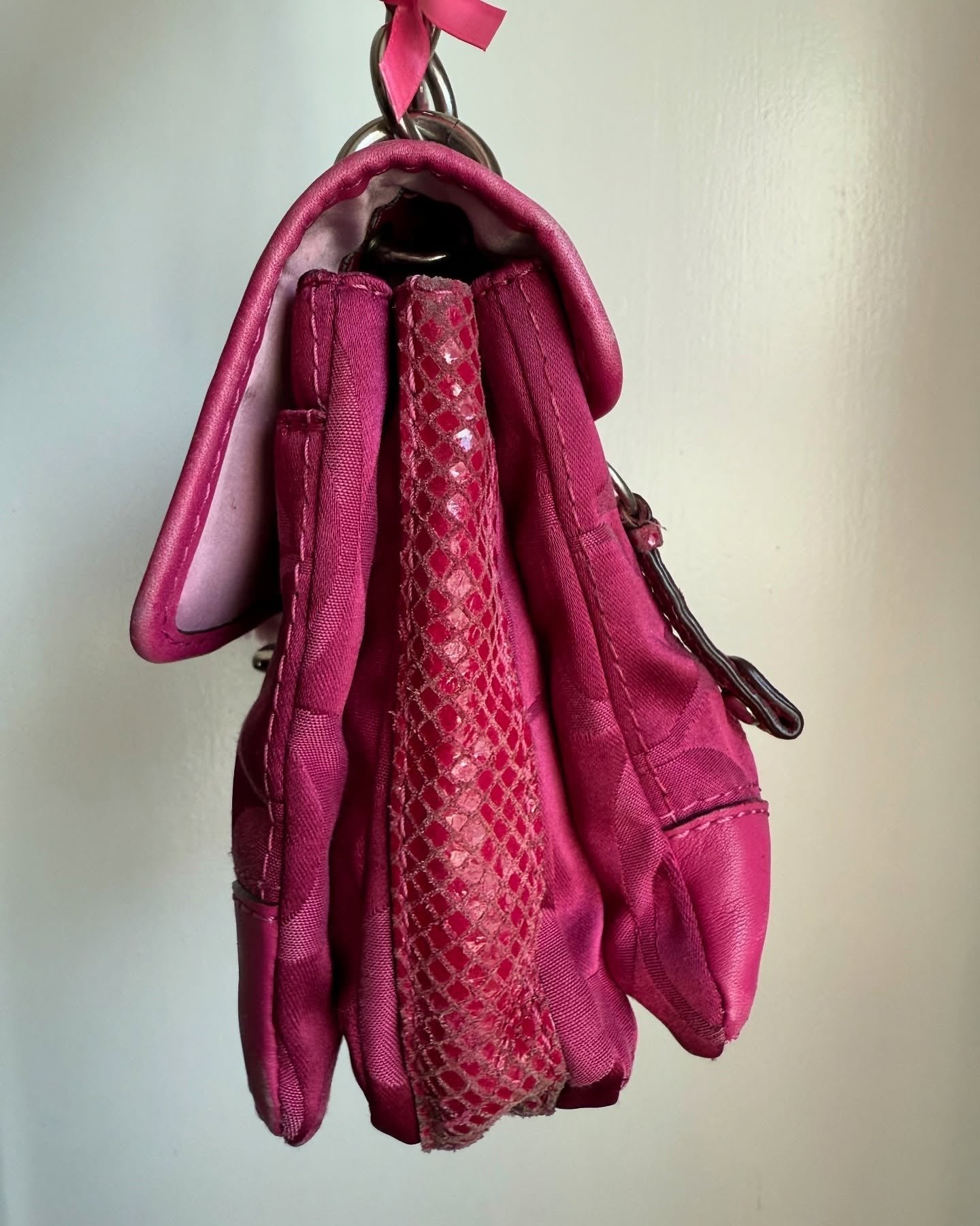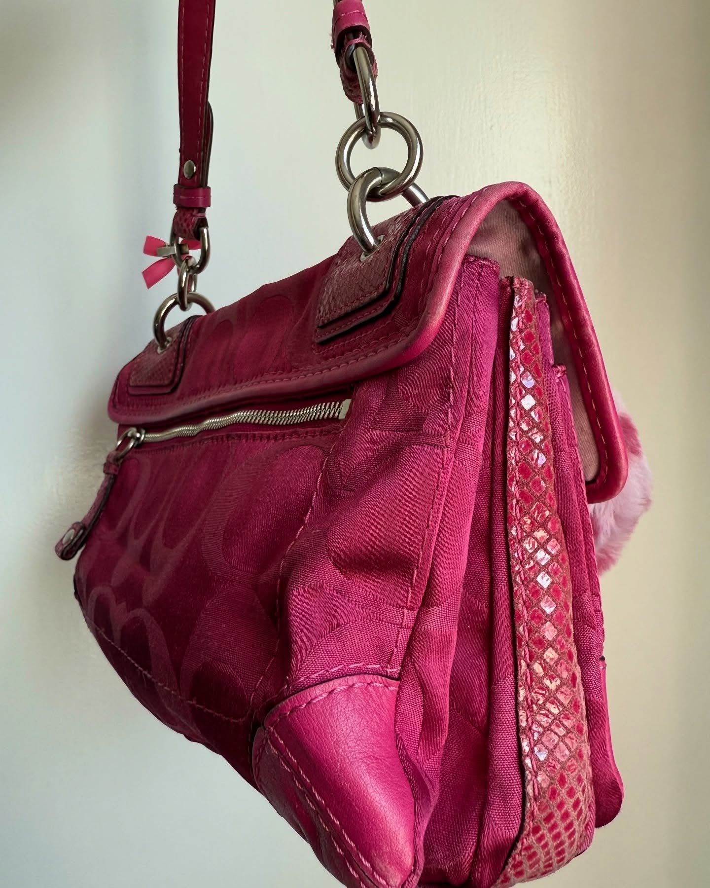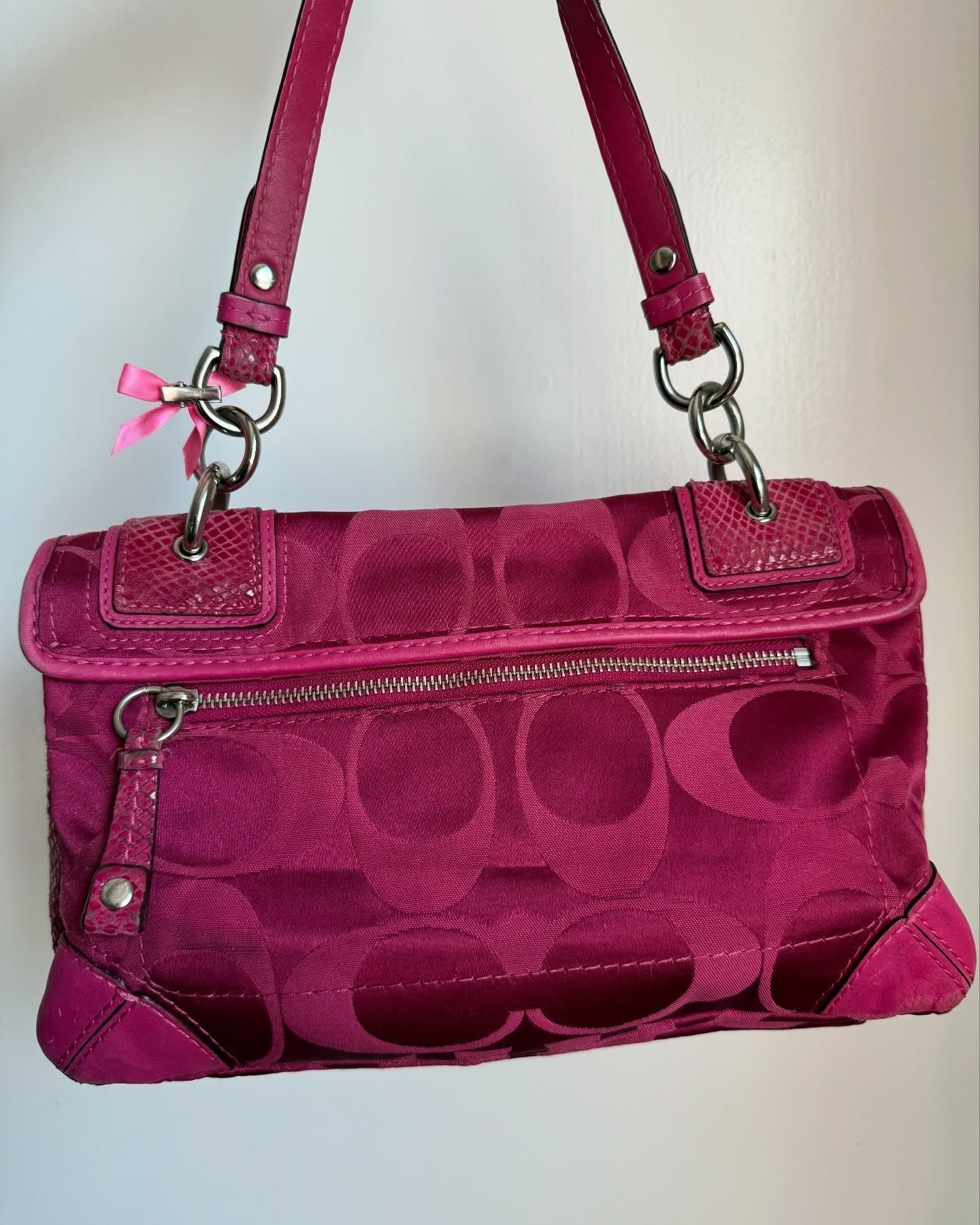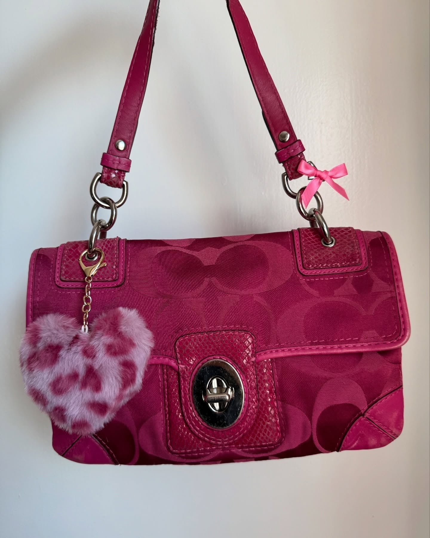 vintage authentic coach peyton pink signature flap shoulder bag with turn lock 🩷 snakeskin leather & plenty of storage in interior and exterior, rare find