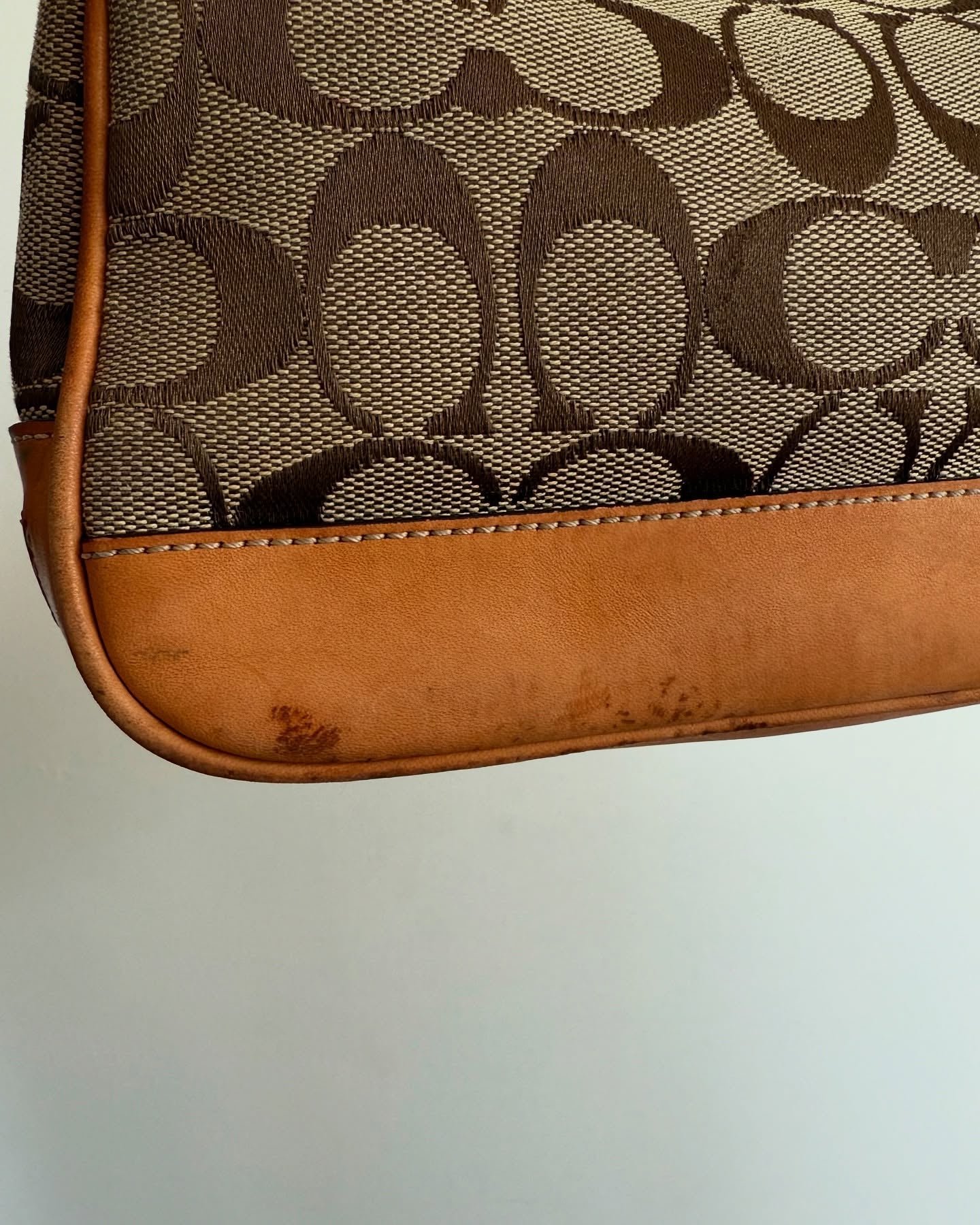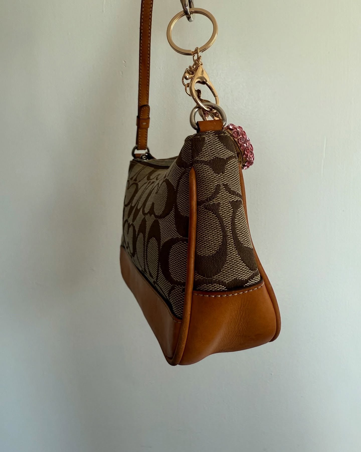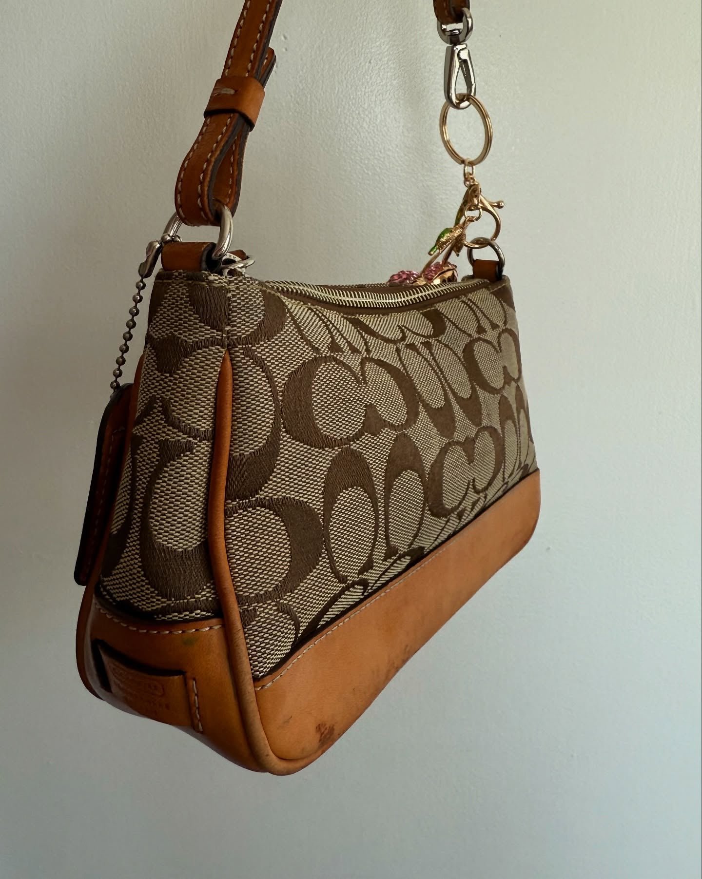 vintage authentic coach tan signature mini demi shoulder bag 🀎