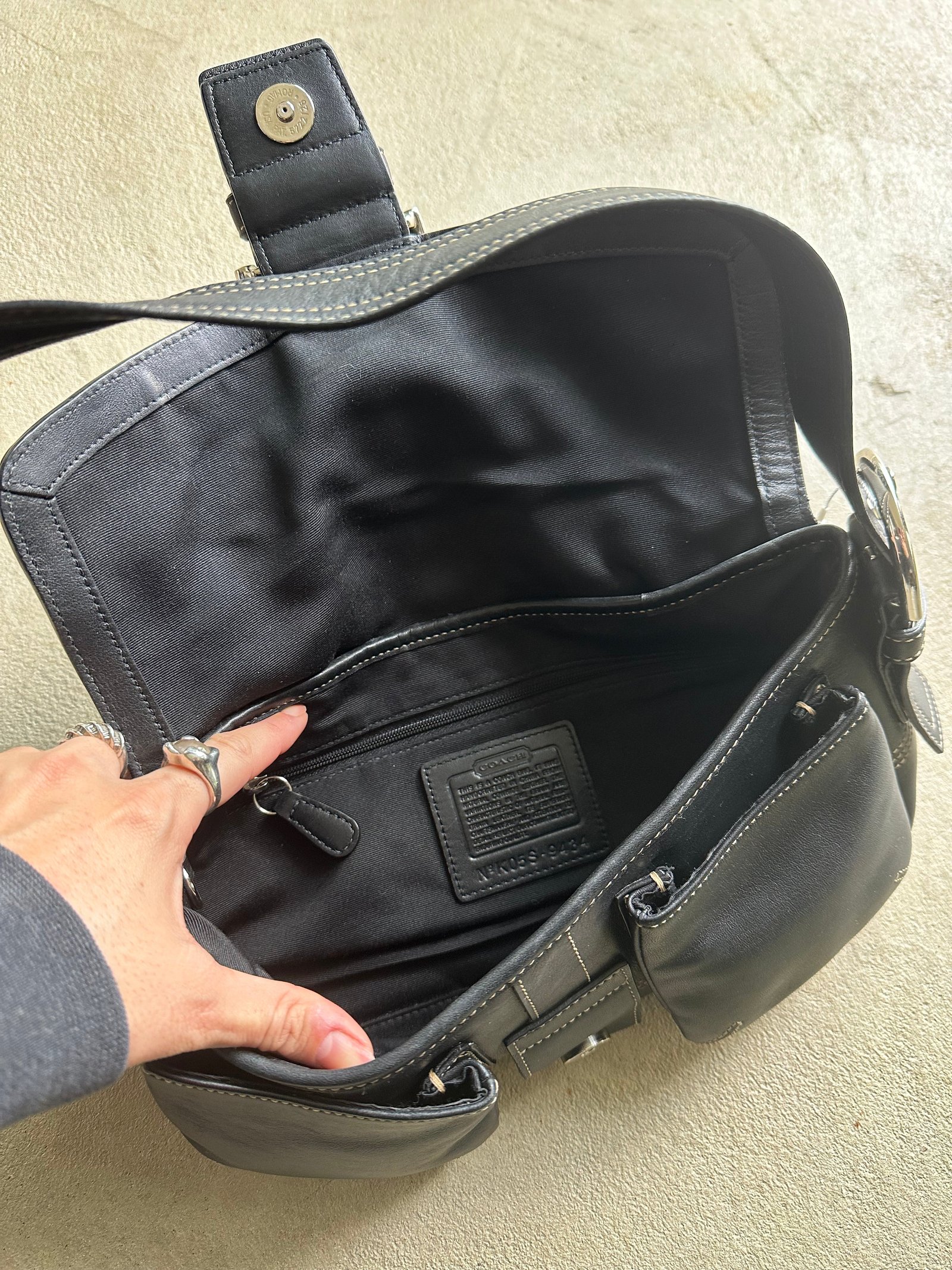 Vintage Y2K Coach Black Square Soho Leather Shoulder Bag