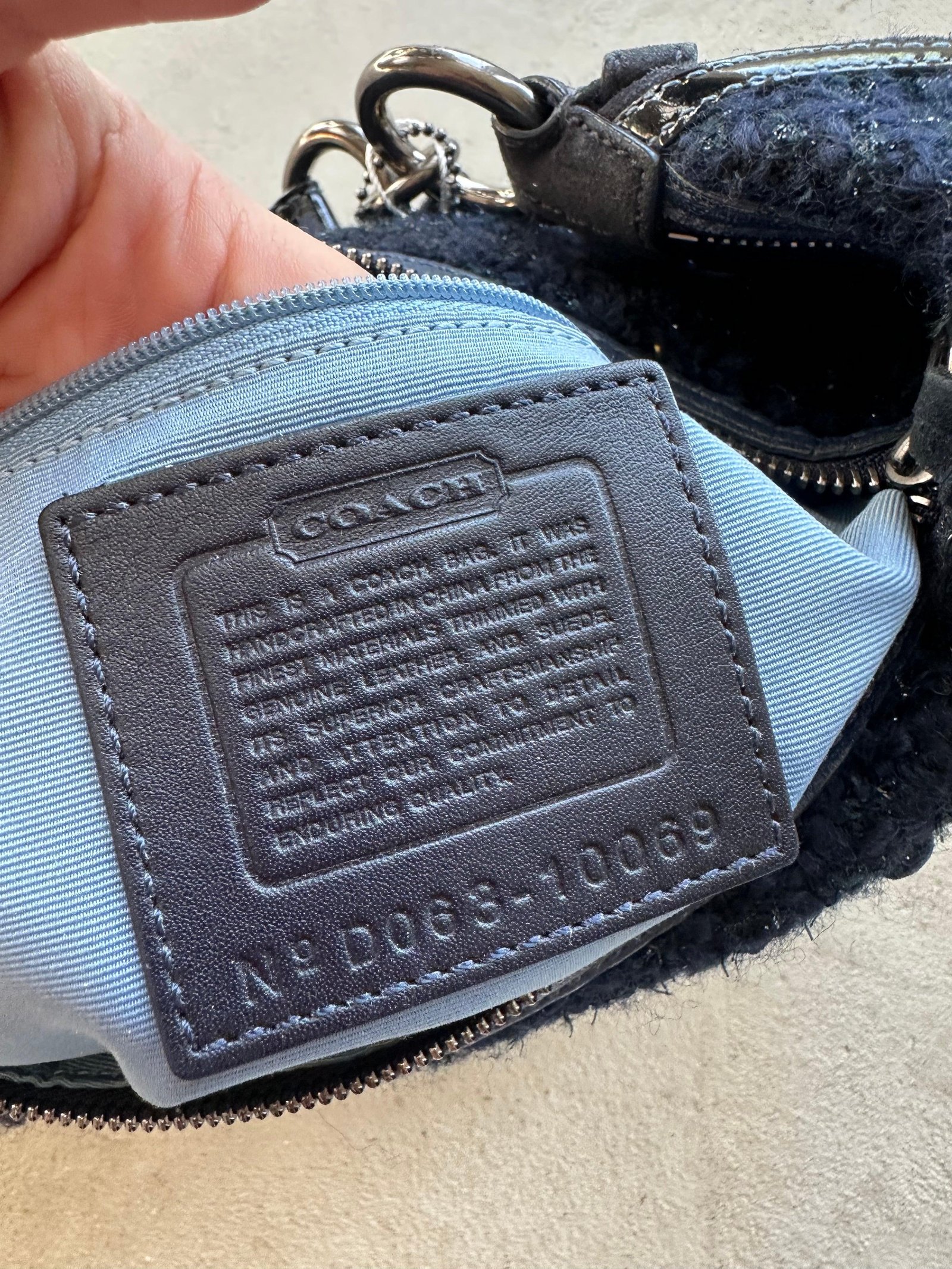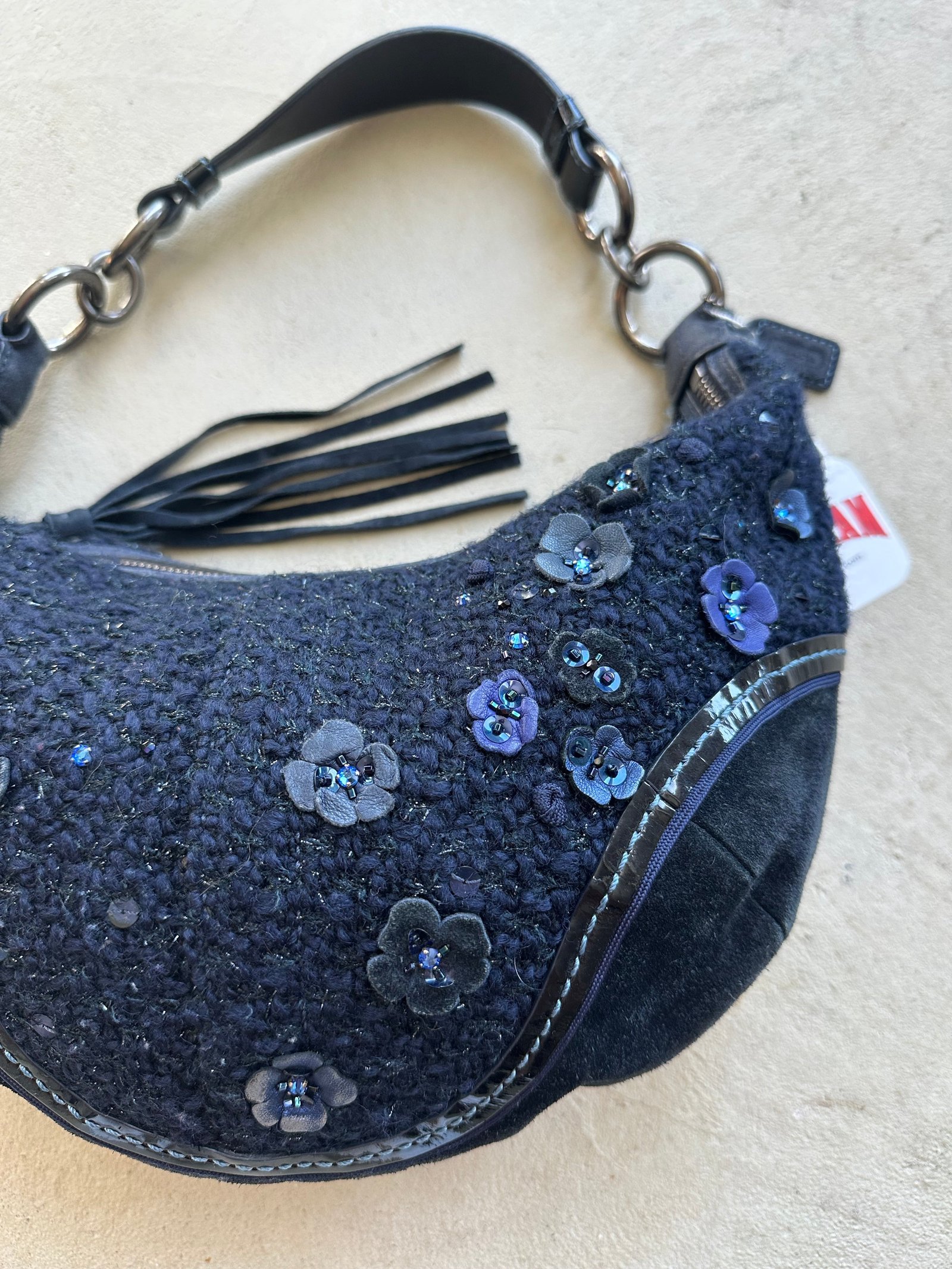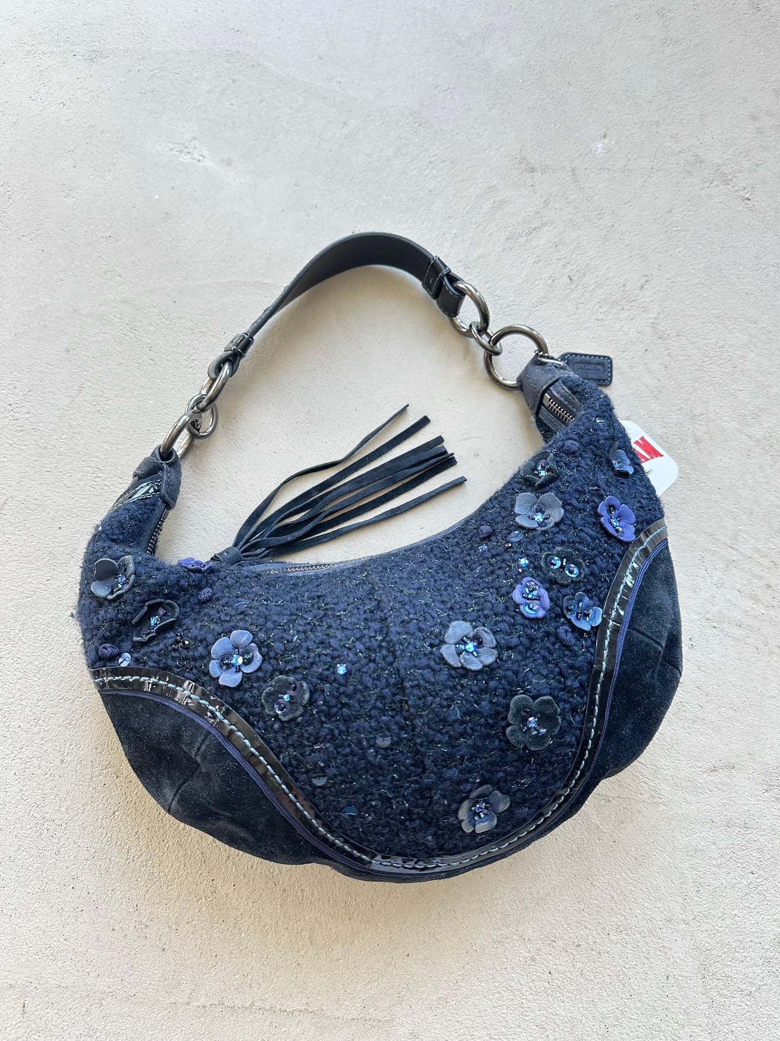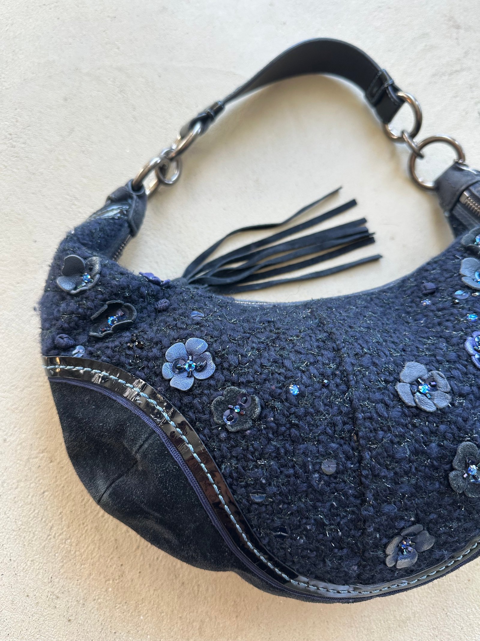 Vintage Y2K Coach Flower Navy Wool Croissant Shoulder Bag
