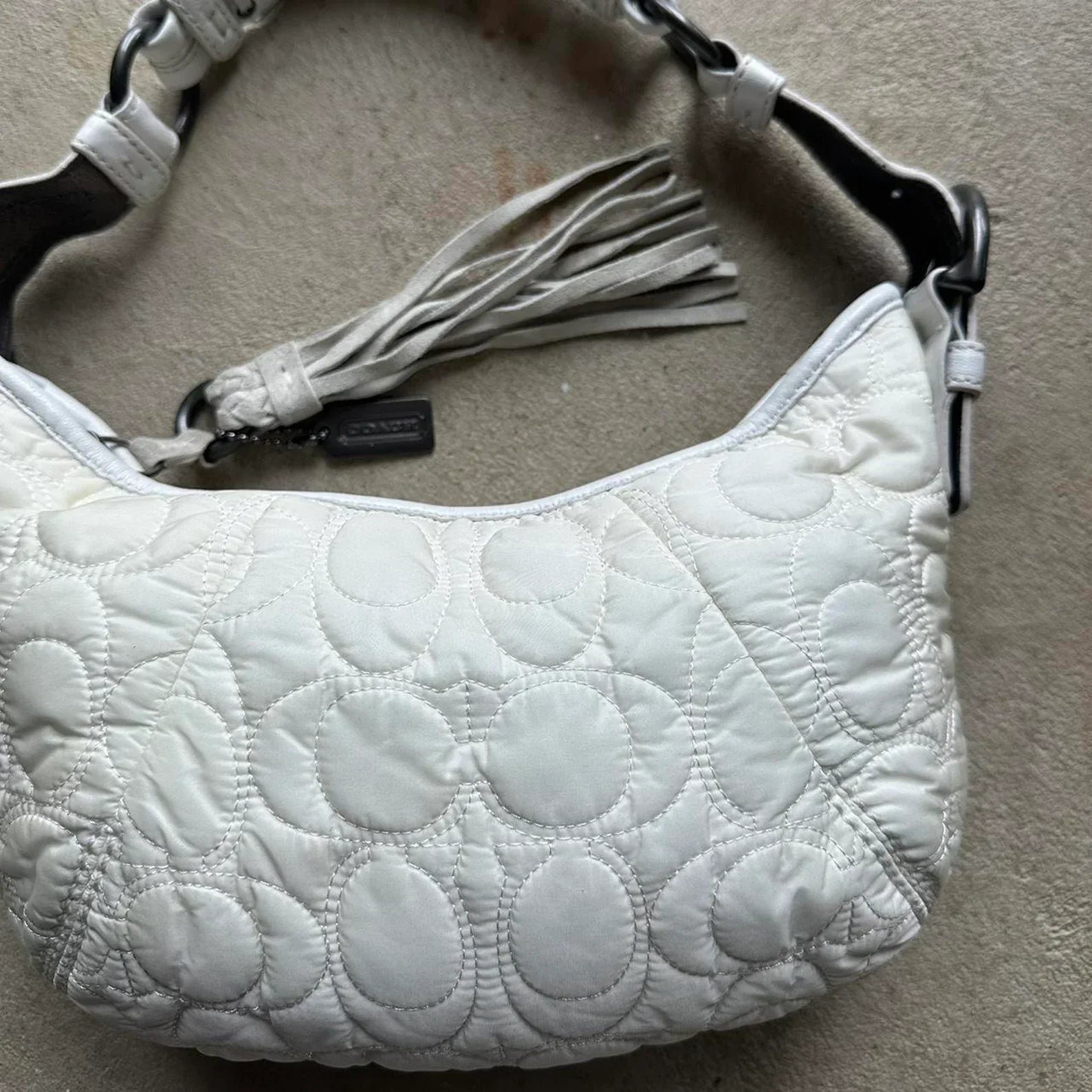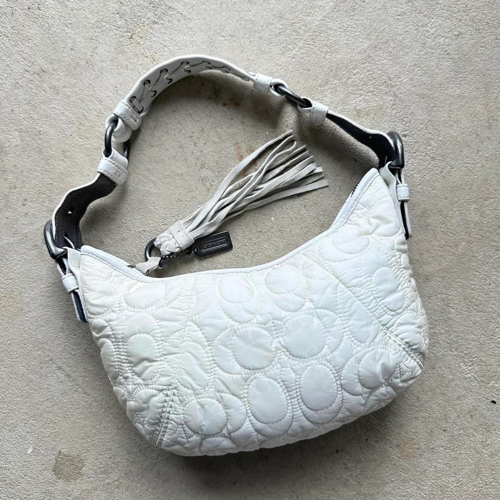 Vintage Y2K Coach Quilted White Hobo Shoulder